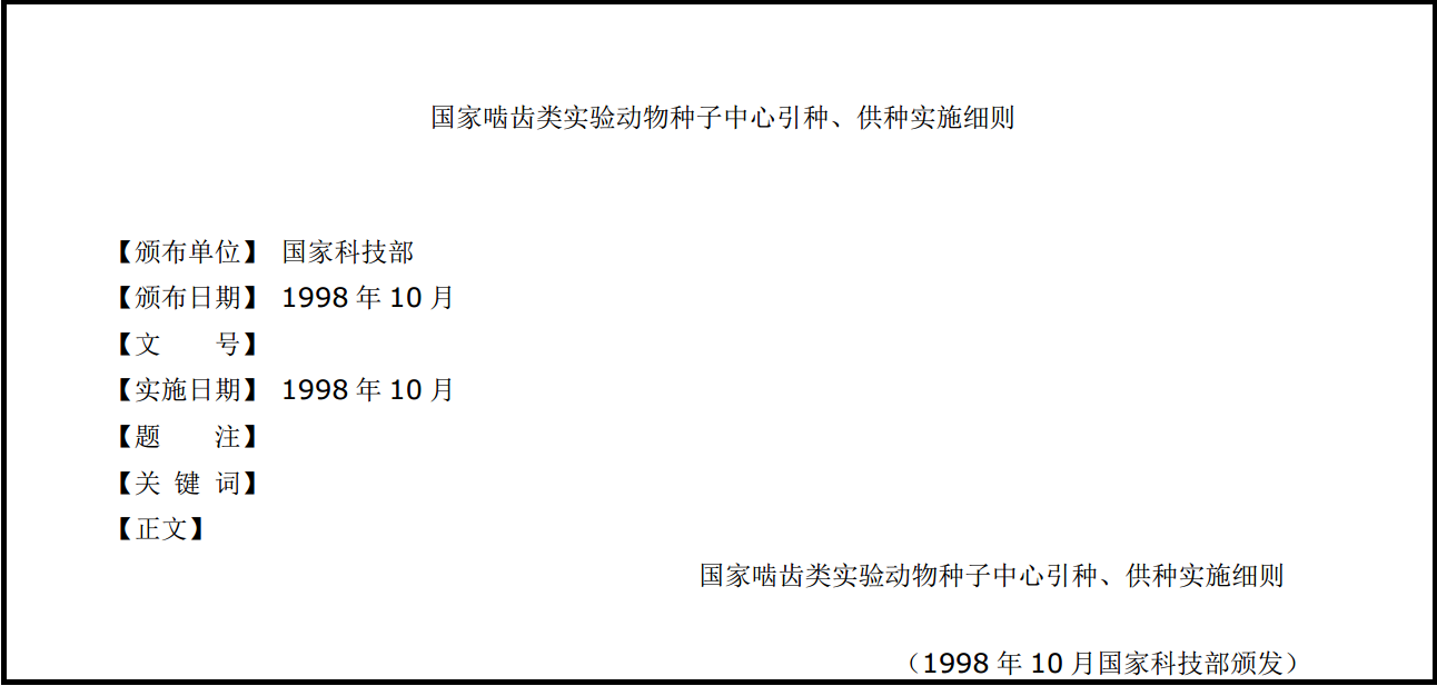 国家啮齿类实验动物种子中心引种、供种实施细则