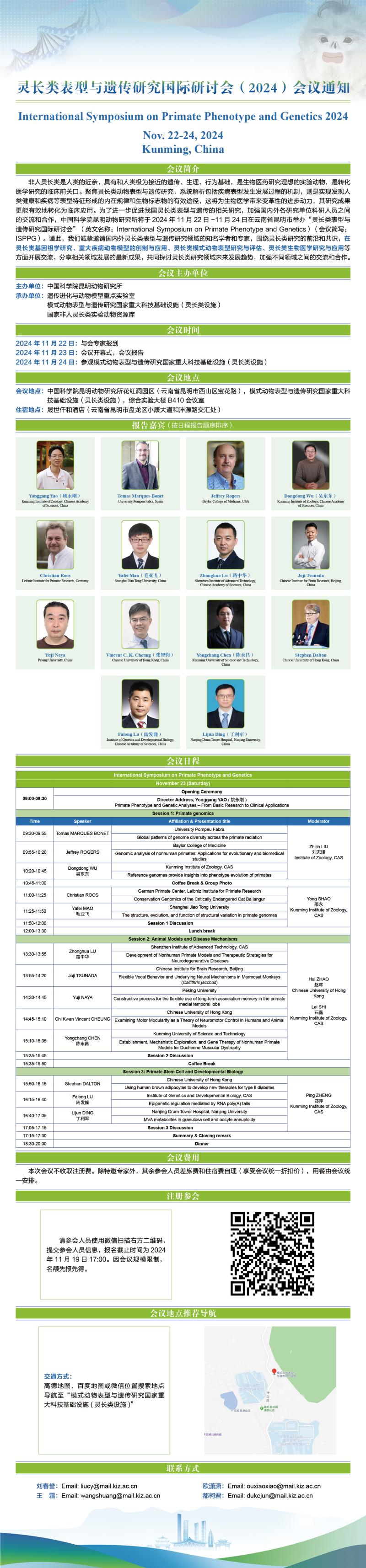 灵长类表型与遗传研究国际研讨会(2024)会议通知